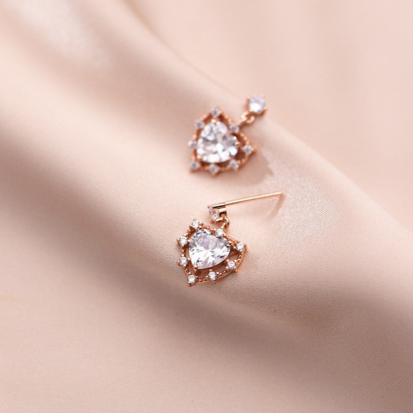 s925 sterling silver heartshape cute chic silver trendy fashion earrings