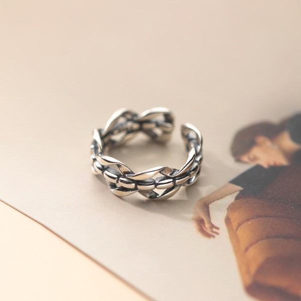 s925 sterling silver trendy vintage doublelayer silver ring