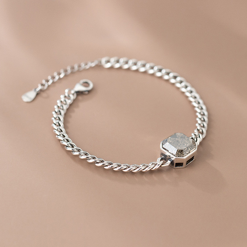 s925 sterling silver chic simple rhinestone asymmetric unique bracelet