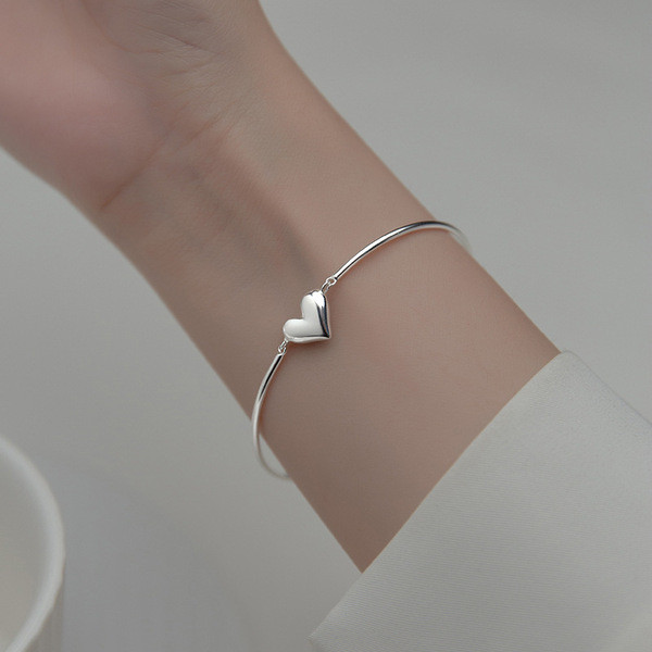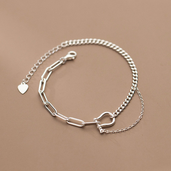 s925 sterling silver trendy asymmetric heart sweet chic bracelet