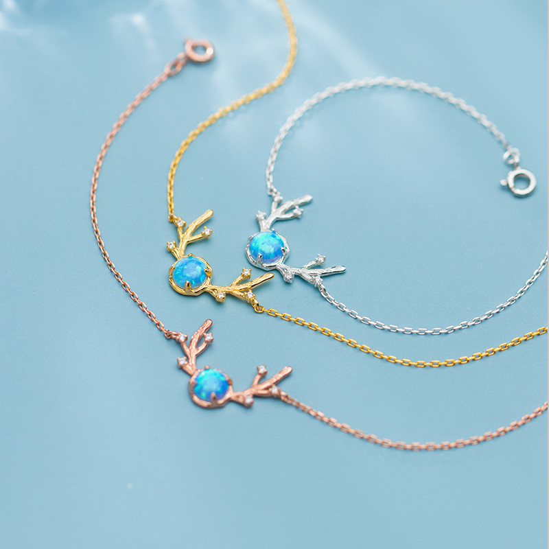 s925 sterling silver opal charm bracelet