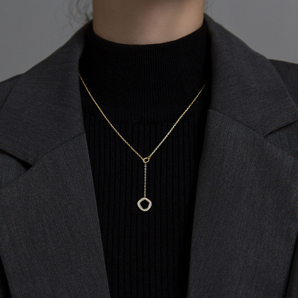 s925 sterling silver trendy rhinestone circle necklace